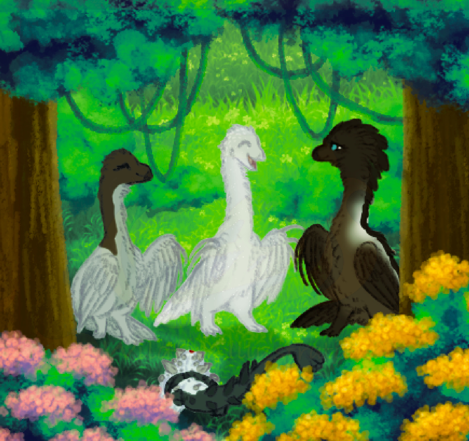 Context: Ch 2 Are you not entertained?; Having shown their more practical skills first, the trio show off one of the other treasures of their group, storytelling..! Saaras is their most enchanting and persuasive storyteller, so the ladies let him do most of the talking while they hang back and do their best to try and provide visuals while he tells one of his many stories.