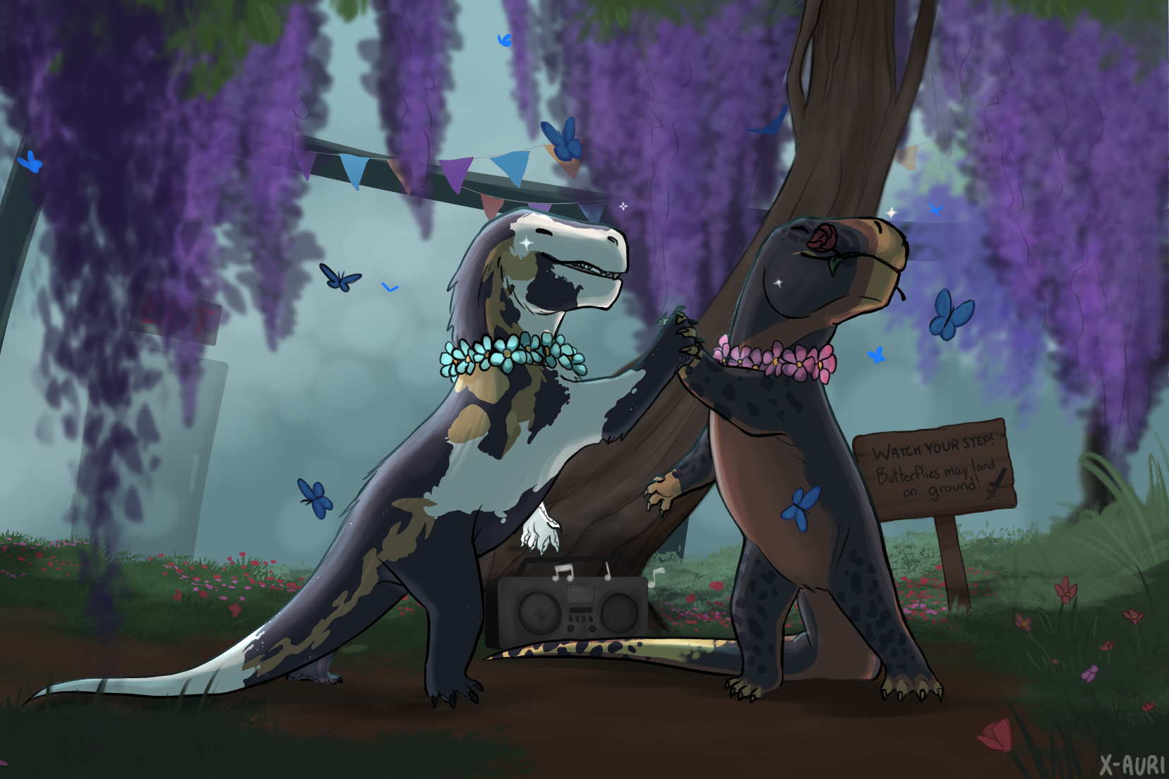 Showing off their dance skills in the Museum Garden/Butterfly room :3