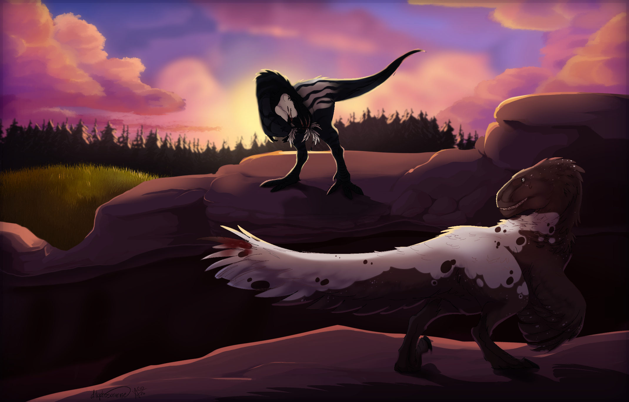 vapor isn't too keen on intruders in her territory, malt isn't concerned enough to worry. the truth is that raptors are way too nimble to be worthwhile to chase and large carnivores usually aren't friendly to stray dinos on their turf.
