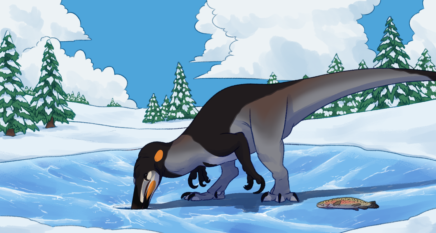 Happi's no stranger to fishing, but icy winter provides new challenges. She's ready to get her face cold for some nice fresh fish.