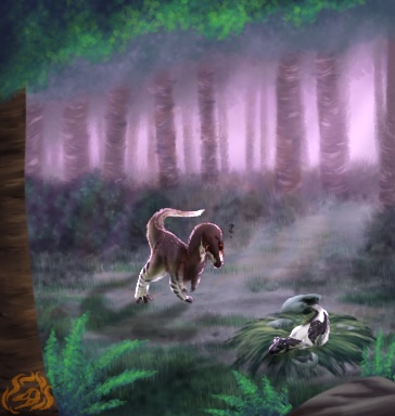 Crossing Paths: Hikon, looking for an easy meal, wanders to a cryo nest that the parents have stepped away from, in which lays Giovanna, newly hatched and very tired. Little Hikon is understandably confused.