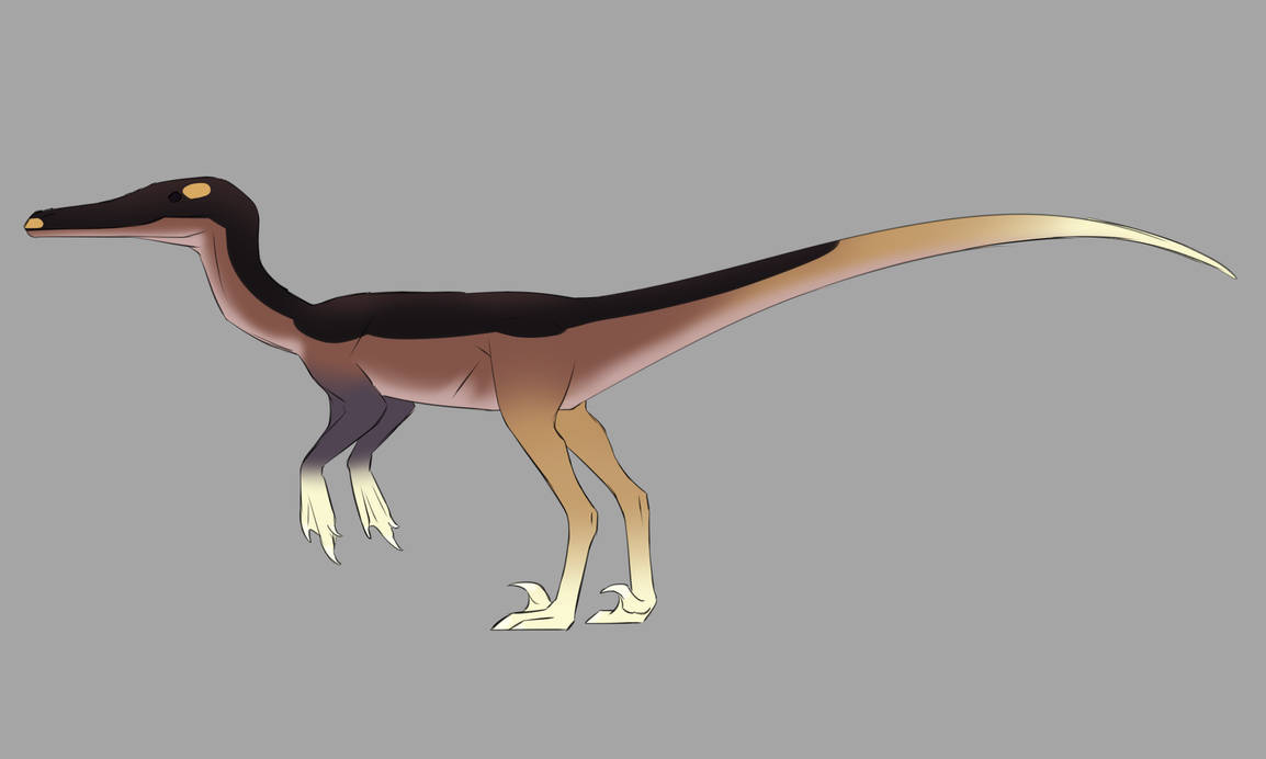 It was smaller than him, but it was very obviously not a utahraptor. Or at least, not a normal one, since it did seem to have the claws and everything. He was pretty sure, anyway. Its toes were a bit short compared to the rest of it, and its killclaws looked… much smaller than usual. Were its toes fused together? There seemed to be some kind of webbing between its tiny “killclaw” and the rest of its toes, which was odd enough. He had never seen another dino with that kind of oddity that wasn’t on its head or neck, not to mention whatever was going on with its face. The whole creature looked as though it had been gripped at both ends and stretched until it had a rat-like tail and a muzzle that could rival a sucho’s in terms of length, if it didn’t stand shorter than him. A long, skinny head on long, skinny neck with long, skinny limbs and the longest, skinny tail.