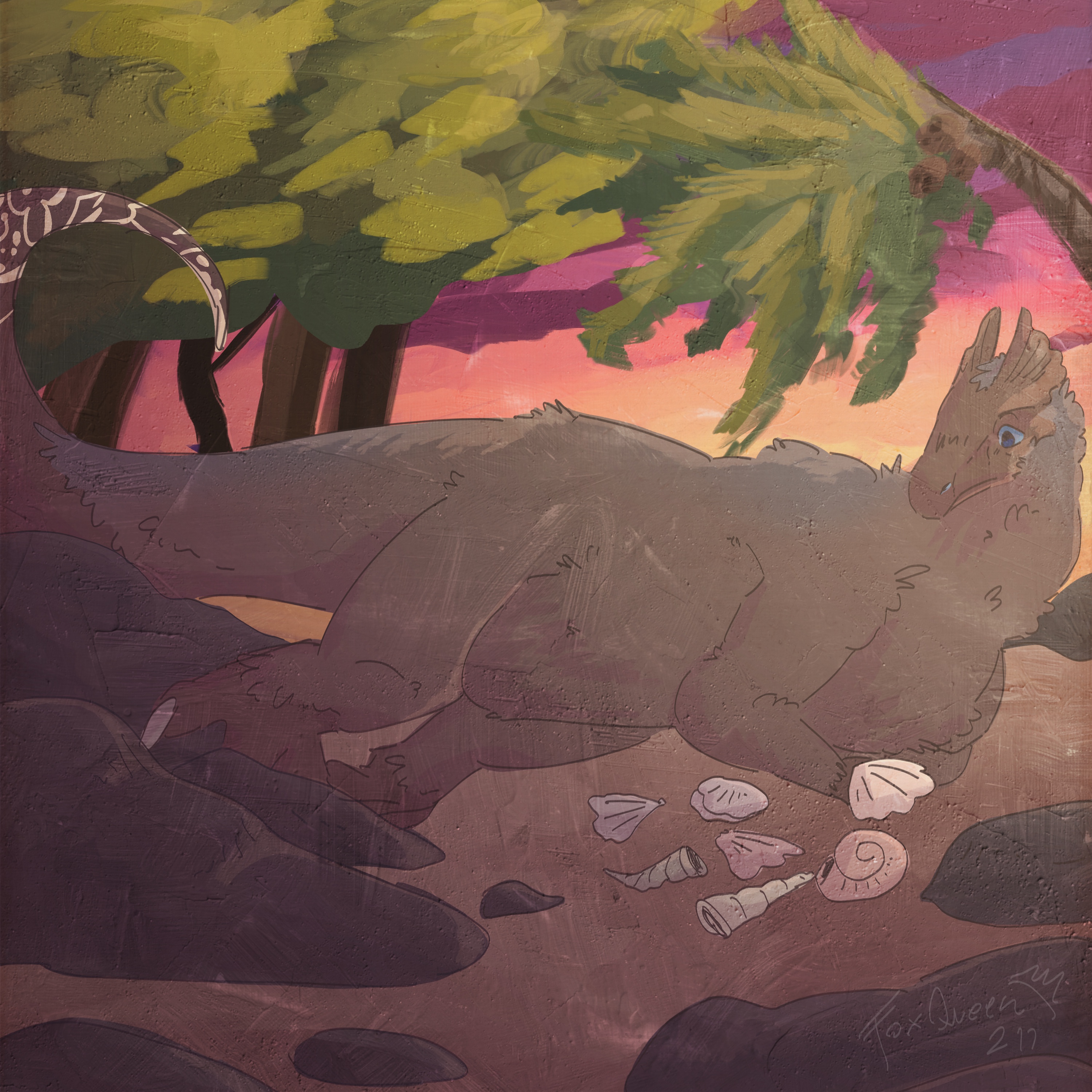 It looks like Mockingbird got a bit early for a party. Well, then he decided to find some seashells.. and he found seven of them! Lucky number, am I right?